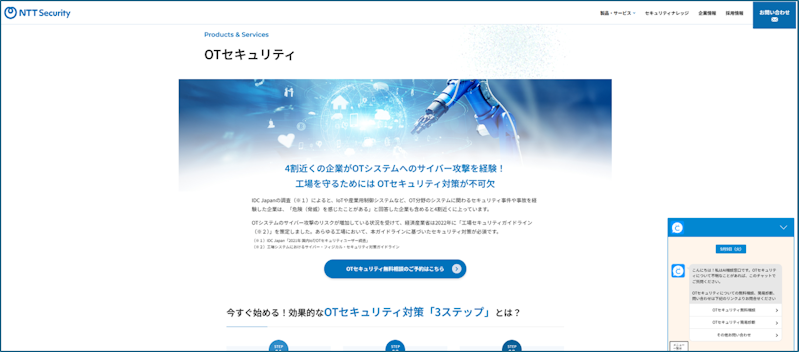 ① NTT セキュリティ・ジャパン OTセキュリティプロダクトサイトにアクセスください