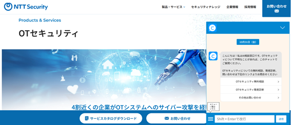 ① OTセキュリティ無料 AIチャット相談窓口は「OTセキュリティ」ページから