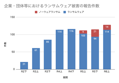 警察庁の公表によれば、令和6年上半期のランサムウェア被害報告件数は114件に達し、高止まりの傾向にあります。被害に遭った企業の多くが、復旧までに長期間を要し、数千万円から数億円規模の損失を計上しています。ビジネスを長期間停止させるこの脅威は、まさに経営の根幹に関わる課題です。
