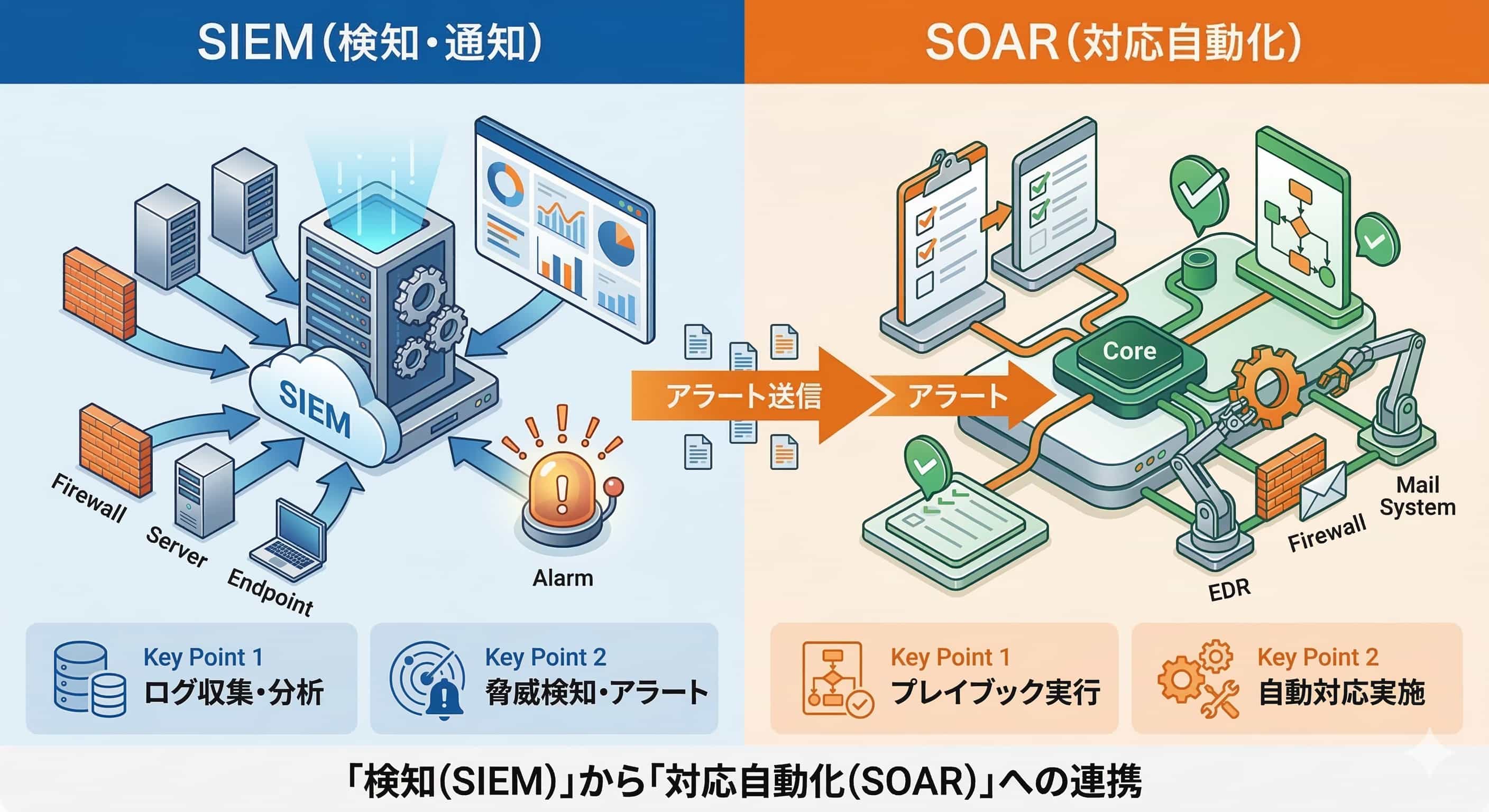 関連記事:SIEMとSOARの違いを徹底比較|アラート対応の自動化で運用負荷を劇的改善