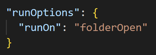 tasks.jsonの runOptions に runOn という設定があります。悪性リポジトリのtasks.jsonでは、この値が folderOpen となっており、VSCodeでディレクトリを開いた際にタスクが実行されるようになっています。