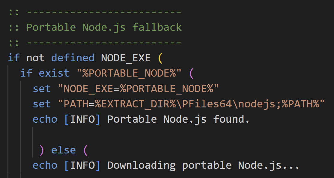 vscode-bootstrap.cmdはまず、Node.jsがインストールされているかチェックします。インストールされていない場合、Node.jsの公式サイトからNode.jsをダウンロードします。