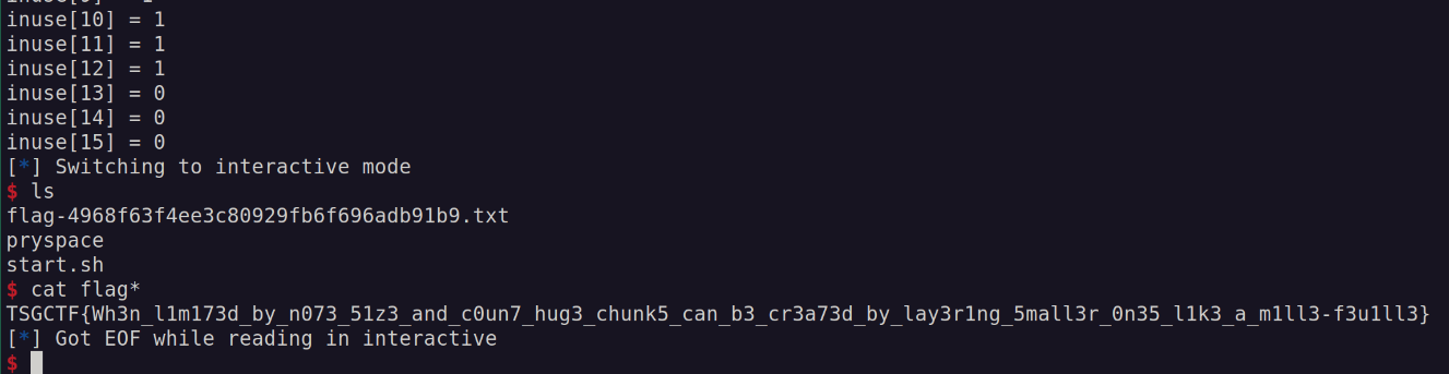 alloc(io, second, p64((holder_addr >> 12) ^ target_addr))