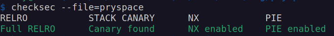 防御機構は以下のようになっていました。Full RELRO, PIEなどの防御機構がだいたいオンになっています。