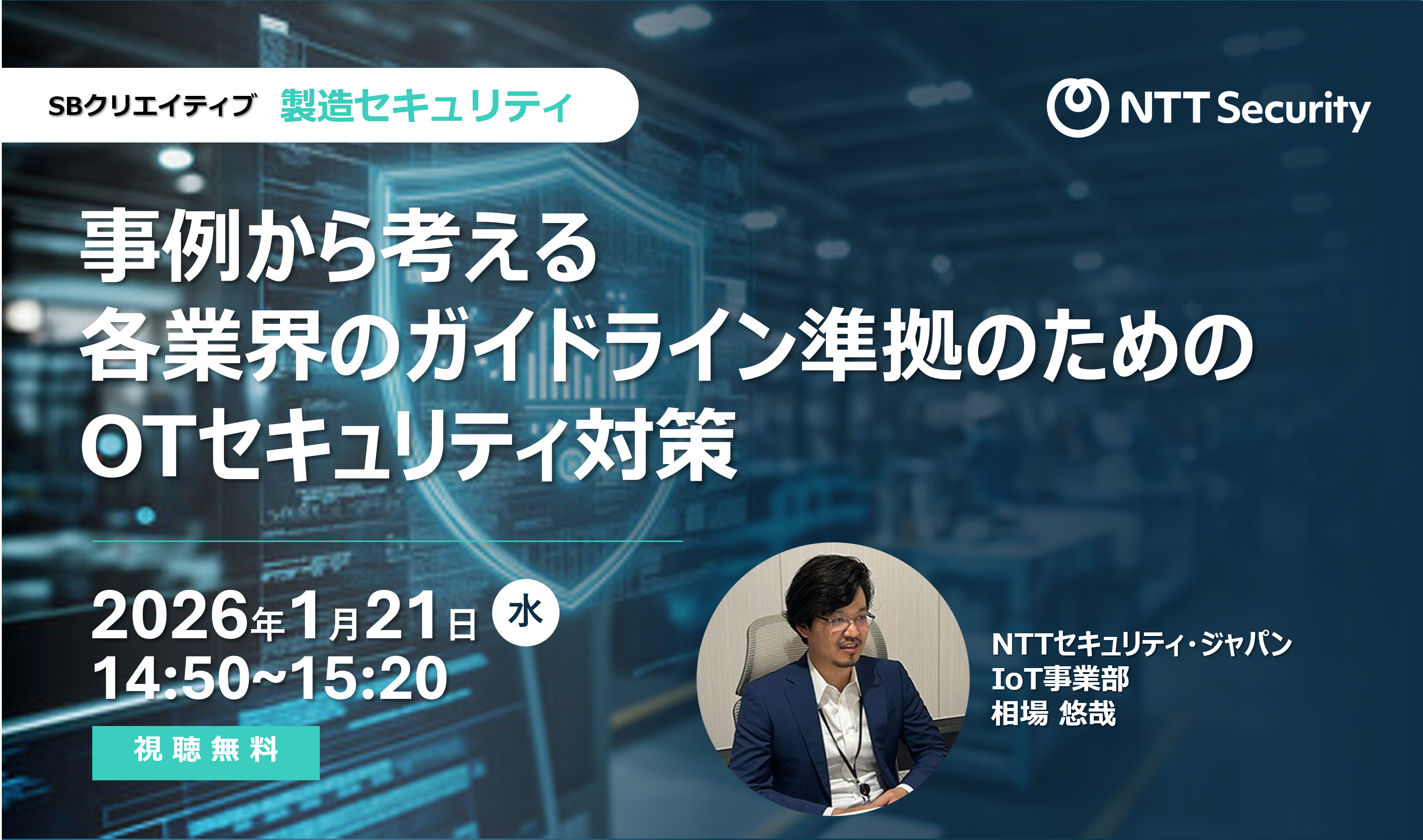 本イベントでは、最新の政策動向を背景に、製造業が取り組むべきセキュリティ対策を経営リスクマネジメントの観点から整理。サプライチェーン全体を見据えたリスク統制、工場システムの強靭化、インシデント対応力の高度化など、持続的な事業運営と信頼確保につながる実践的なアプローチを紹介します。