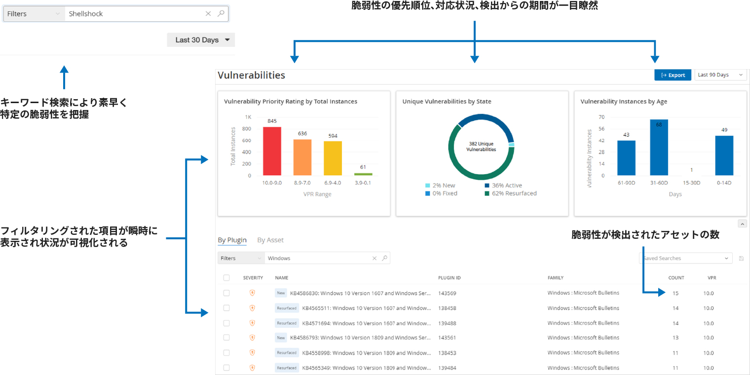 - 自社組織に内に存在する特定の脆弱性を瞬時に把握することが可能です。