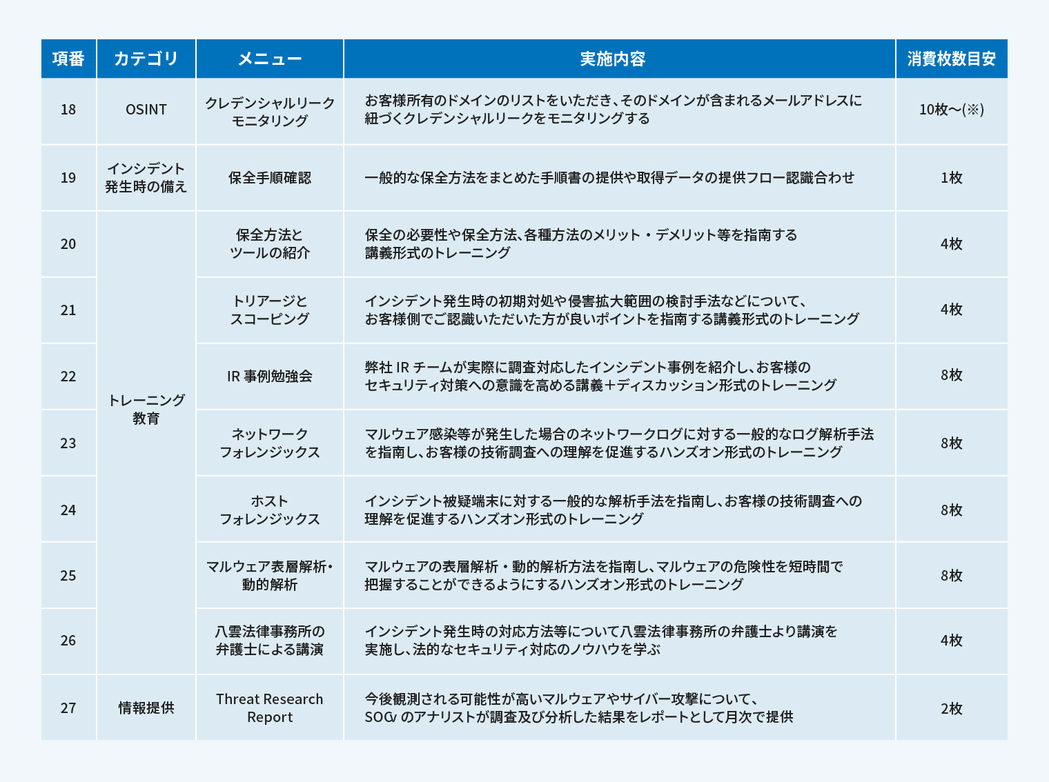 不足分の対応は別途「総合インシデントレスポンスサービス」の契約が必要です。